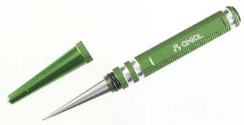Designed to create and enlarge holes in Lexan, ABS, balsa, poly carbonate - almost any hobby material Extra sharp point starts holes quickly and precisely; razor sharp flutes remove debris while cutting for clean, perfect results Handle is made of knurled anodized aluminum for a secure comfortable grip A cap protects reamer tool when not in use Green anodized handle and safety cap.