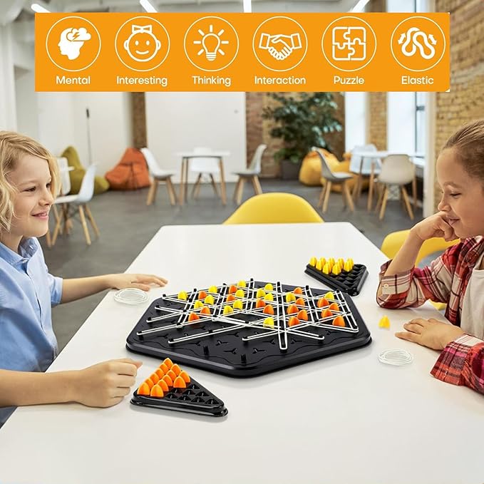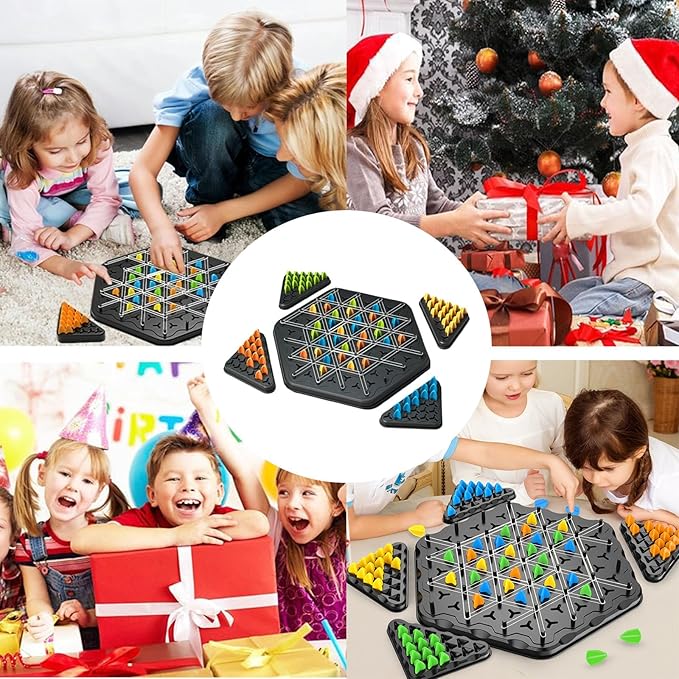 - Our Chain Triangle Chess Game includes: 1 game board, 4 mini game boards, 84 game pieces, and 50 rubber bands. This is an addictive strategy board game with interlocking triangular pieces, beautifully packaged and perfect for unleashing your strategic thinking and building skills with our Triggle Game.