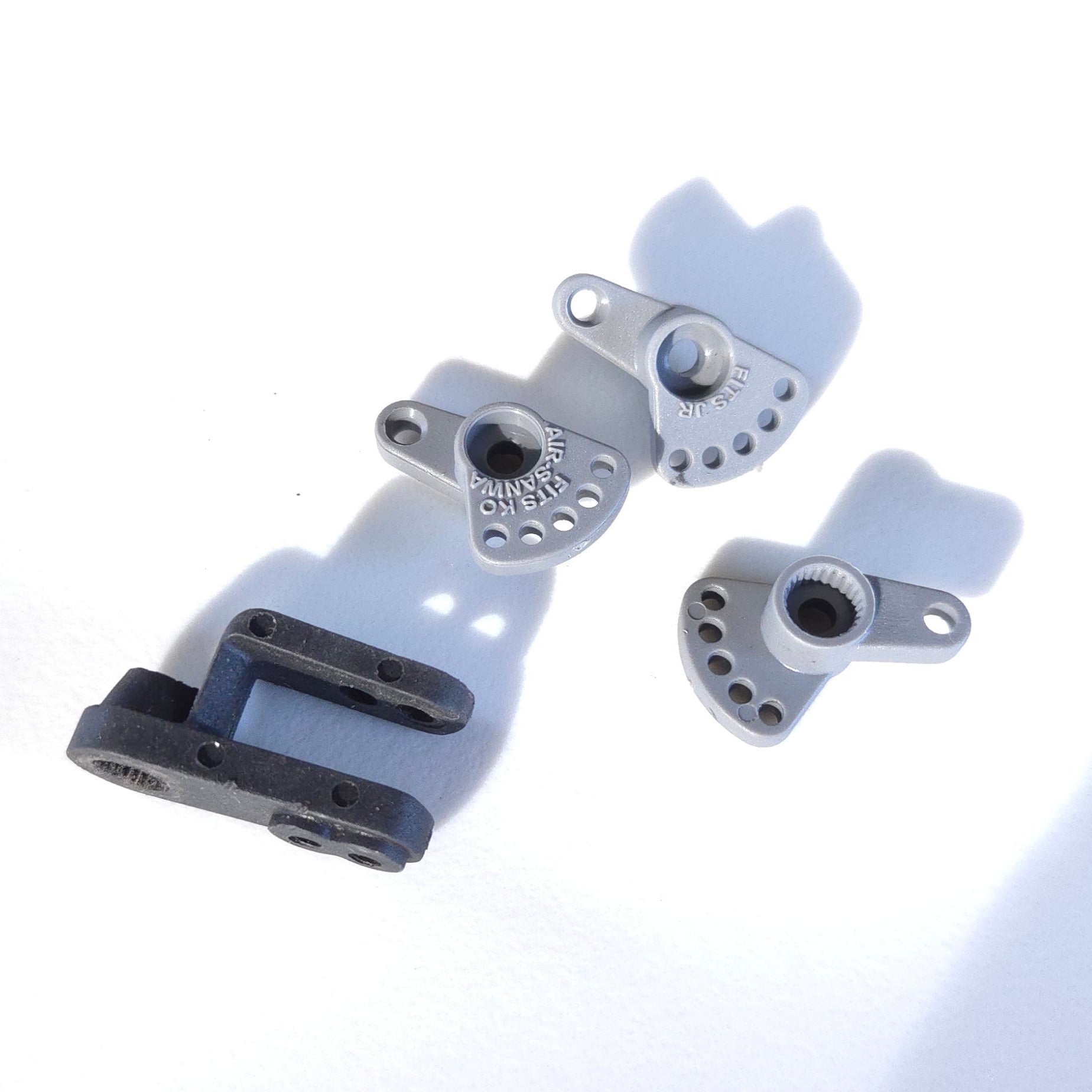 This is a pack of optional steering servo horns and steering linkages for the Traxxas Revo monster trucks. This is the version that contains the servo horns to work with non-Traxxas servos such as those from Hitec, JR, KO and Airtronics.