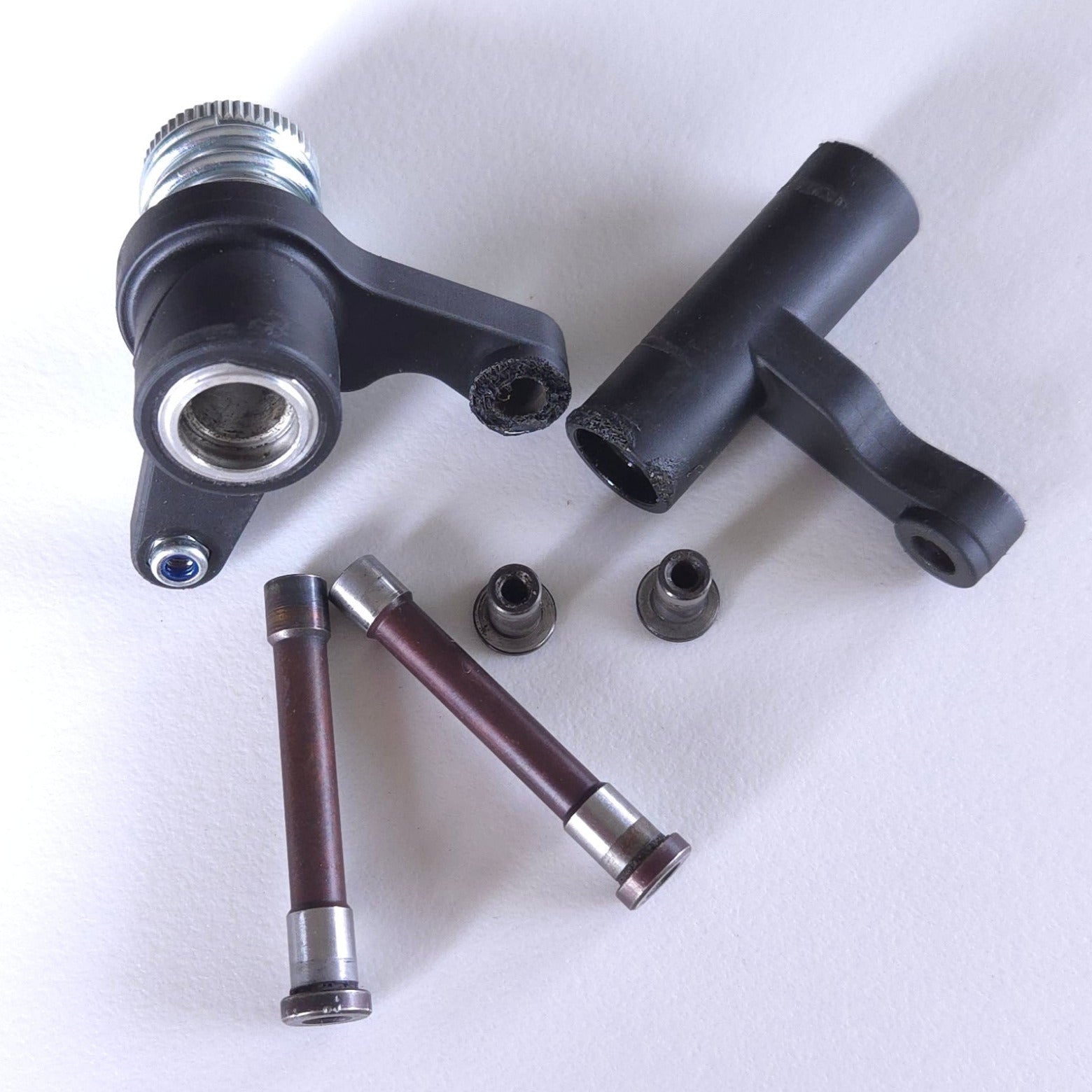 Factory pre-assembled servo saver set. Includes two servo saver stands manufactured from Hudy Spring Steel, aluminum stand and bushings.